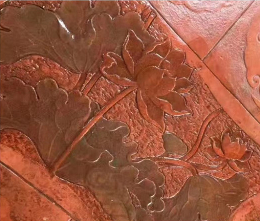 3、现场压模地坪纹理与基层浑然一体,解决了常规铺装难以克服的表层松动和中空造成的易破裂现象;