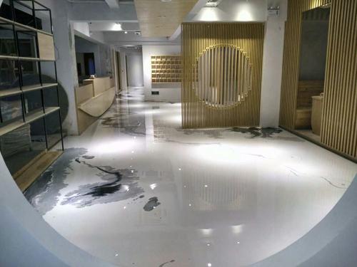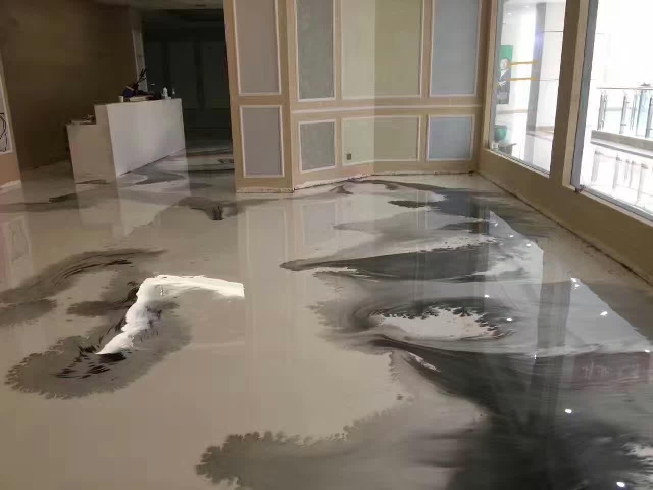 基础地面上先用环氧找平,等找平层干了之后,在上面做上海景琪水墨流淌风格艺术地坪。